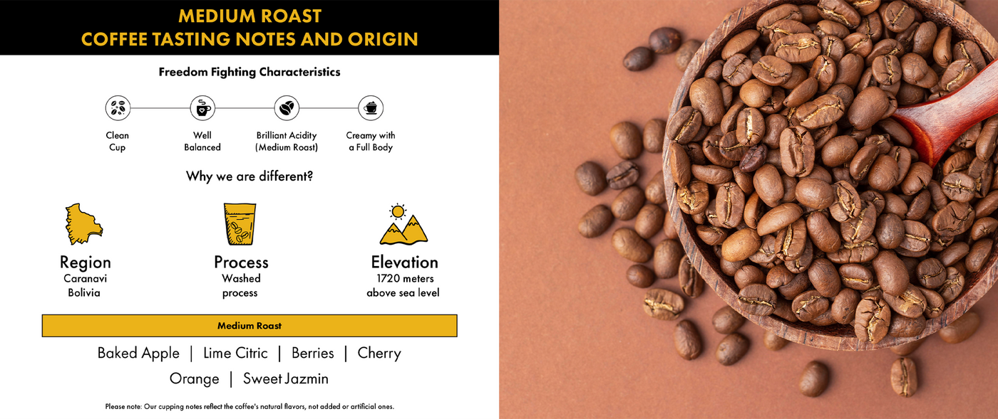 A clean, well-balanced brew with a full, creamy body and just the right kick. Sourced from the high altitudes of Caranavi, Bolivia, and crafted through a meticulous washed process, this medium roast is made to fuel your freedom. With its smooth finish and vibrant flavor, it’s the perfect way to start your day—or power through it.