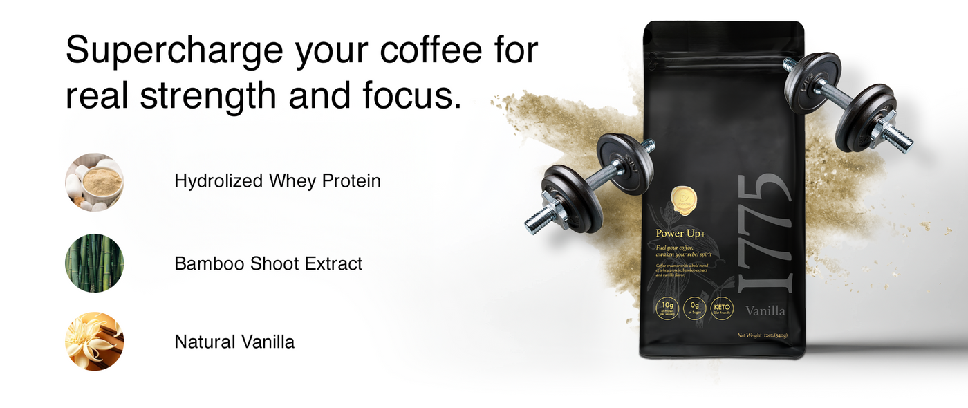 Supercharge your coffee with PowerUp+, our protein-packed creamer infused with 10g of whey protein, bamboo extract, and a hint of vanilla. It’s like adding the strength of a warrior and the clarity of an independent thinker to your cup.